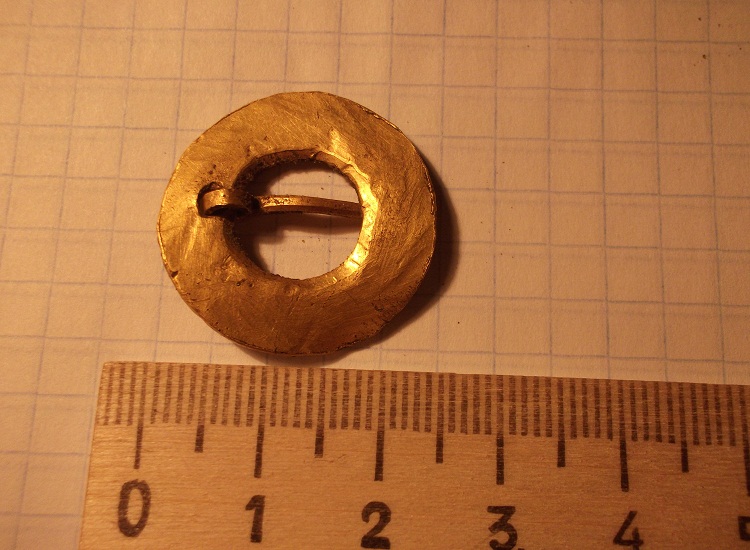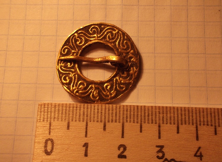 Андрюха,жаль что меня не было при подъеме.Что то профи молчат,я покопался и смог только найти что она кольцевая,подобное крепление иглы .высмотрел только у англо-саксов,5-6 век.Кольцевые фибулы находили также в Новгородских землях,но из просмотренных похожих не нашел,датируются они 12-13 вв.Скандинавию я как то не вижу,нет типичного для них орнамента,Русь тоже не представляется,слишком благородный метал для места находки,остается все-таки Европа ,наверное добыта кем-то у богатенького торговца(возможно и скандинавом)а может и местным хлопцем, в набеге на чужие земли.