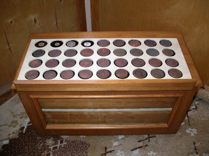 После того как мы с товарищами подняли клад пятаков, решил сделать себе мюнцкабинет (ну не нравится мне, как монеты в альбоме лежат).
