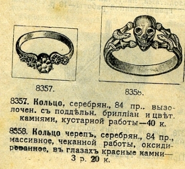 Такие перстни попадаются в местах где отродясь не было ни гражданской,ни ударных отрядов. И даже женских размеров попадают. Все дело в том что перстень не имеет к этому никакого отношения. У ударников была соответствующая символика.Ктото мог и носить перстни с адамовой головой,кто то мог носить ТАКИЕ ПОКУПНЫЕ ПЕРСТНИ. но от этого они не стали перстнями ударных отрядов. Это обычный ширпотреб н.20в.