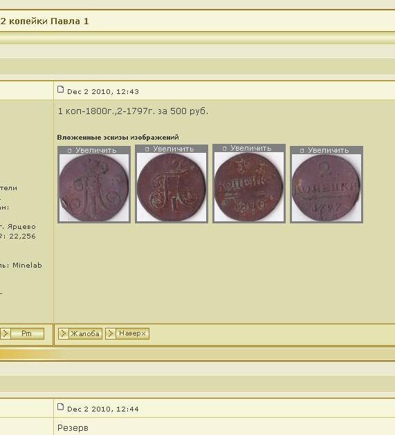 QUOTE(Di_rector @ Dec 3 2011, 18:25) Коллеги, что за тип вензеля? Сколько может стоить? Монета сегодня найдена мною в Беларуси. Поехал покопать шостаков, а привёз Павлову двуху. ![]() ![]() Монета тип 1. Ну что тут сказать. остается только завидовать. Очевидно основная масса Павловских двушек "Узкий вензель" была отправлена в оборот в Белоруссию и ближние районы наверно знали что в начале 21 века именно там будет экономический кризис. Хорошая монета .редкая. По цене не скажу - цена может взлететь при наличии желающих с деньгами. а бывало и так Сообщение отредактировано PRO: Dec 3 2011, 19:41 Вложенные эскизы изображений -------------------- |