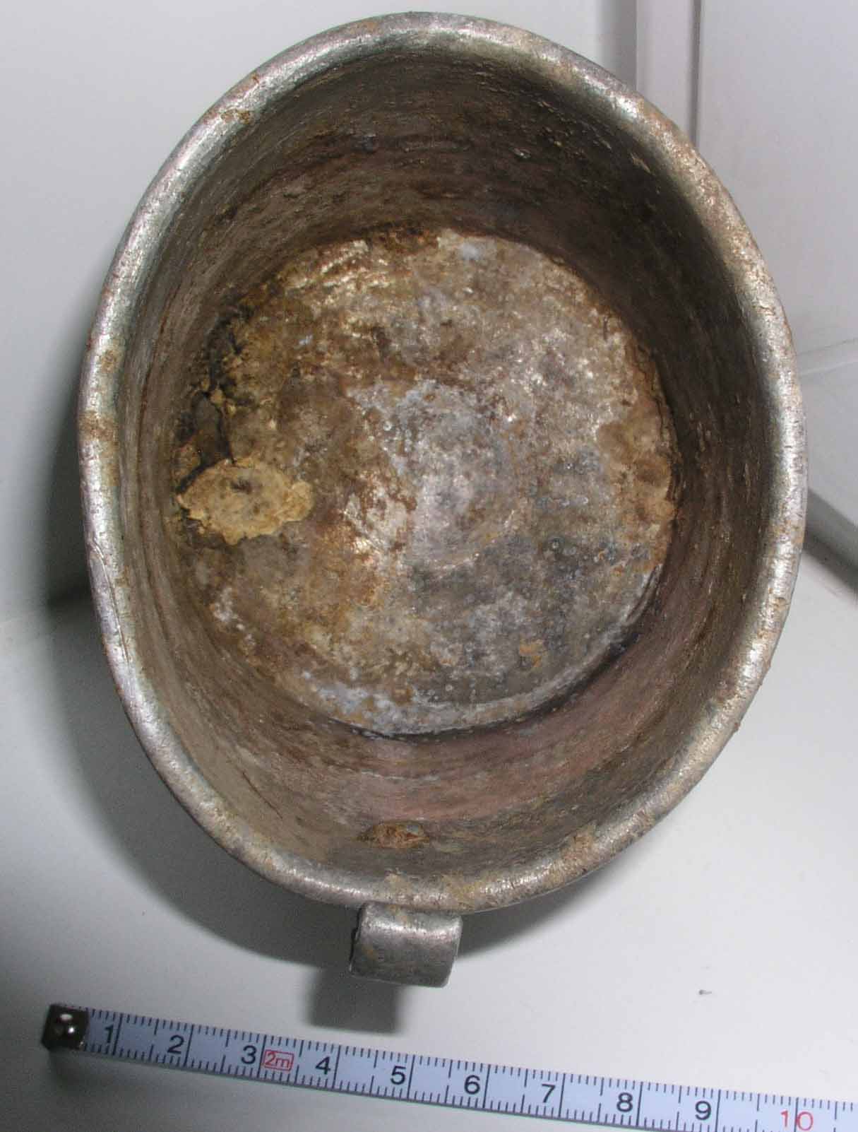 Подскажите по кружке. Попалась среди настрела и гильзача на закрытие сезона на месте малодворки, сгинувшей предположительно по ВОВ. Клейм нет, только на внутренней стороне донца остался круг, внутри которого нет клейм. Да, чем почистить? Электролиз? Пока лежит отмокает. Сообщение отредактировано Maxbout: Dec 29 2011, 13:17 Вложенные эскизы изображений -------------------- Беспощаден в желании помочь