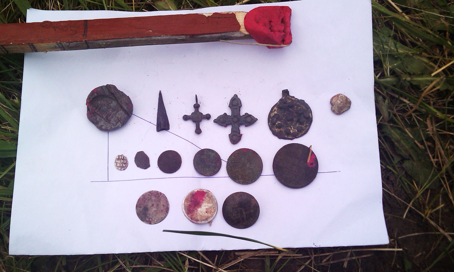Кстати еще был закопан бронзовый диск диатетром 8см на глубину 55 см.