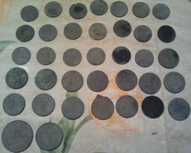 Всем форумчанам доброго здравия! Извеняйте за арфографию сказывается воспитание. Ну вот на днях с сайта скачал карту и решил посетить местечько новенькое весь вечер возился с кардинатами забил в навигатор утром заехал на работу и в путь. Еду это я и вижу мой электронный друг стал хондрить перезагрузил и дальше в путь въехал в одну деревню примерно уже понял где старое село а навигатор опять меня уводит ну думаю наверное река короткую дорогу отрезала поеду по как техника кажет. Приехал я на место указания и вижу что не то моя забитая точька оказалась на той стороне реки Ну думаю не судьба туда попасть НО как не странно не подолеку уже и знакомое место но туда не собирался забиваю сново новую точку гораздо дальше чем первая и впутб 2 часа езды блин и я сново около знакомого села ладно если уш притянуло то копаю. достал аппорат лопату и сигнал поднимаю пуговица антанта пойдет иду дальше бам крестик ну думаю спасибки деду которого я недавно нашел и дома теперь живет надо будет его чем небудь побаловать. тут опять серебрушку поднял потом вижу бугорок подхожу к нему сигнал ковыряю монетка опять сигнал вторая тут же и третья в целом 37 монет из одного места правда все мертвые выкавыривал из сажи ну и ладно не зря с утра деду песни пел пока собирался. Не клад а приятно начать новый сезон для разминки И ВСЕМ ВАМ желаю для души оторватся! P.S. с фото неугодал извеняйте и строго не судите исправлюсь.