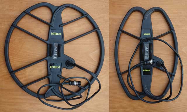 На территории Украины прибор комплектуется датчиками NEL разработанными специально под Кощей20м. На "эталонные" 5коп СССР прибор уверенно показал дальность по воздуху около 40см для датчика 12х13" и около 37см для датчика 8.5х12.5". Датчик 12x13" можно рекомендовать для поиска в малозамусоренных местах или когда нужна максимальная глубина "любой ценой". А вот датчик 8.5х12.5" можно позиционировать как универсальный датчик, предназначенный для решения повседневных поисковых задач.