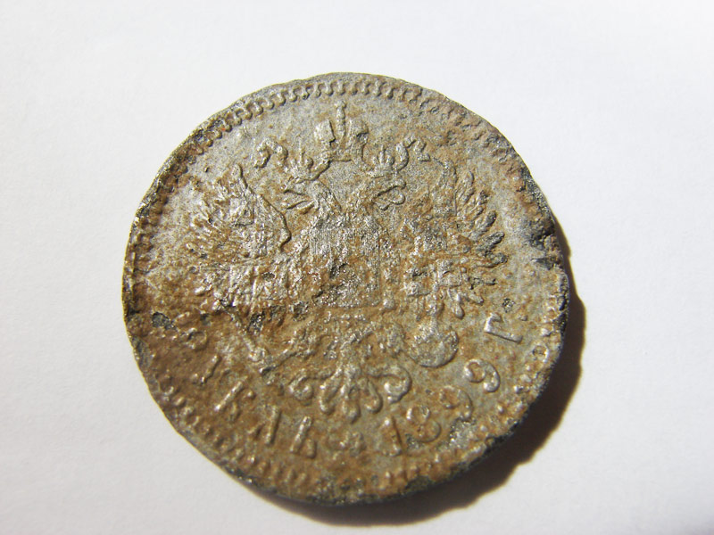 Горелый рублик и сильно. Вот и серебришко в шлак перешло. Перегрели металл - поменялась его структура, следствие крошится. Долго грели, но до плавления не дошло - пожар. Вывод: подлинный горелый николашкин рублик.
