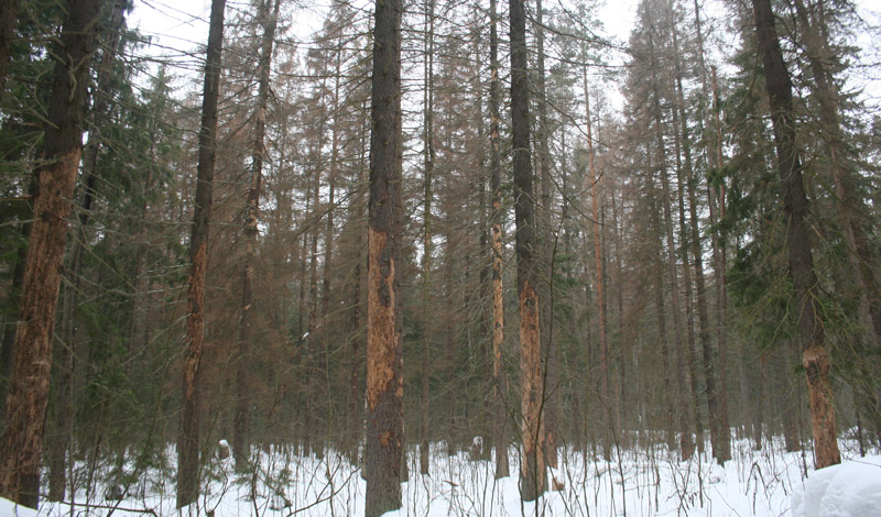 Это жук-топограф так хвою коцает в 2003 году в подмосковье отлавливали его специальными ловушками,да производили рубку и сжигание деревьев уже поеденых,а сейчас это никому не надо из чинуш