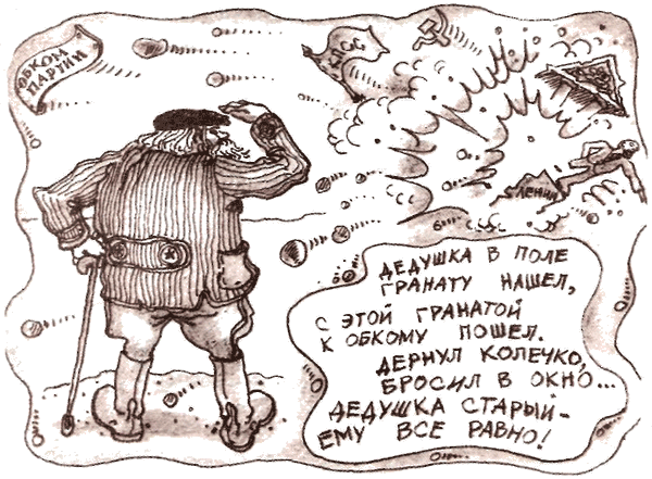 рыбу ловил .Мимо него проплывал крокодил… ![]() Ох, и кряхтел же зеленый сморчок :в жопе(_SOS_) - (жопа в беде ) застрял пионерский значок -------------------- Куплю.Обменяю Ваших солдатиков воен. технику, модель. машин на http://imgsrc.ru/klw_klw/a637337.html