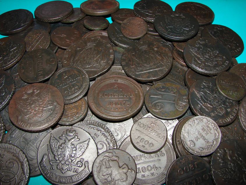 Но раз подняли тему, отвечу: 30кг. меди от Елизоветы 1748г. до Александра I 1814г. монеты: в основном двухи и пятаки, в количестве чуть более тысячи монет, в красно-глиняном сосуде, накрытые дном серо-глиняного сосуда, на глубине порядка чуть более 50см. прибором Кондор 7252 с моно датчиком. -------------------- Профи они почему профи - места знают.