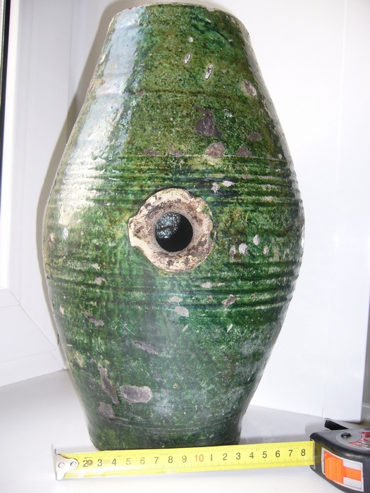 Симпатишная штука ( из за зелёной поливы) в принцыпе сам сосуд не редкость , цвет только приятный. Конец 19 ная 20- ого.
