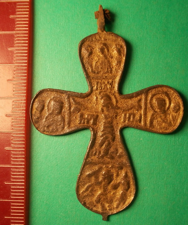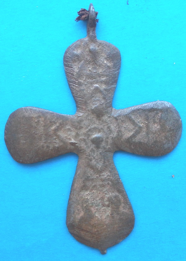 Добрый вечер, уважаемые! Откопал пропеллер с приличной глубины. Был удивлён, что сохранилась верёвка в ушке. Дома немного ополоснул водой и прошёл мягкой зубной щёткой. Очень был удивлён, что крест сразу же отмылся и на нём нет окислов. Смутило то , что крест покрыт то ли позолотой, то ли ещё каким - то металлом. Попадались кому-нибудь такие же? По идее это 14-16 век. Так ли это?