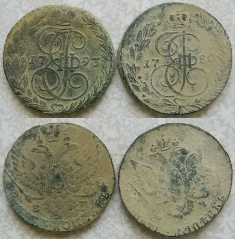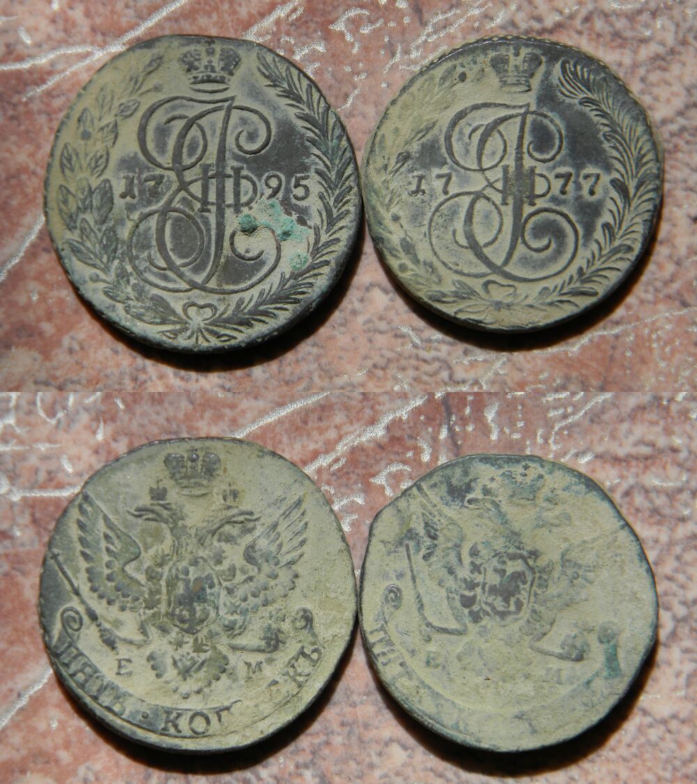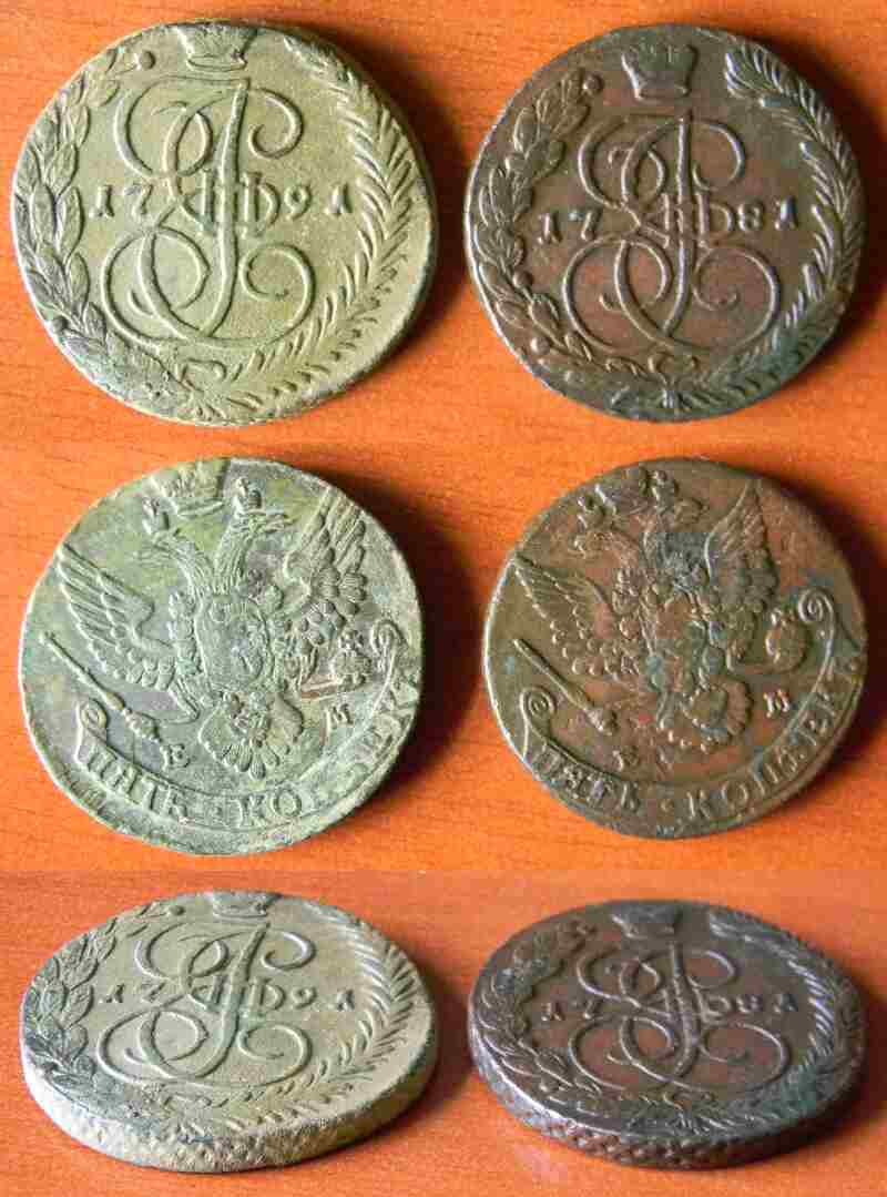 Чистить я пятаки особо не умею – как-то не устраивает неповторяемость результатов по общеизвестным методикам. Да и с требуемой химией у нас в городе напряжёнка. Так что и не буду особо пытаться – разве что слегка зубной щёткой с мылом для демонстрации состояния (см. фото: и грязные, и после зубной щётки. А такие, как, например, парочка 93 и 80 – и чистить не хочется – и так недурны. Кстати, у 93-го – необычно маленький для этого периода вес, даже в немытом состоянии - 41 г). А профессиональной чисткой пусть лучше займётся будущий хозяин (или хозяева) – буду продавать, т.к. тема не моя. С деталями ещё не определился, - хотя никто и не торопит. Да и предыдущие два кладика тоже лежат почти нетронутые. Впрочем, и ещё есть… Вот такая история. Есть вопросы – задавайте. Нужны какие-то фото – пишите, - сделаю и выложу. С уважением ко всем коллегам и пожеланием таких же «тяжёлых» прогулок, MYC. Вложенные эскизы изображений -------------------- Что касается незаконченных фраз,