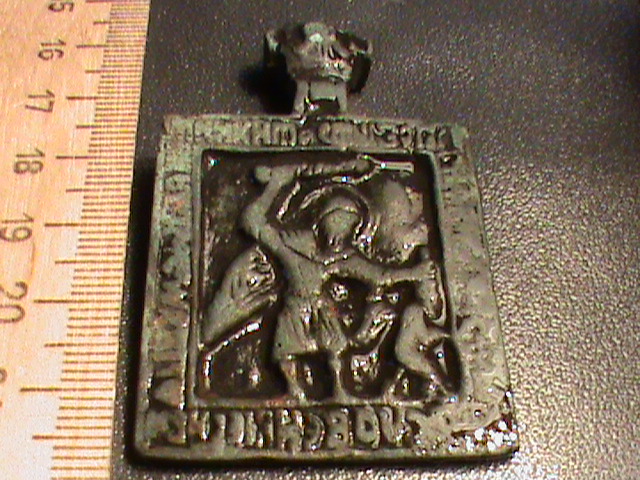 Доброго времени суток уважаемые форумчане, подскажите по времени и цене.Поднял среди советского серебра. Размер плашки 3,6 см* 4см , навершие около 2 см(итого в сумме 6см ). Возможно будет продаваться.