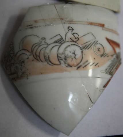 видел эту чашку целиком, но не смог вспомнить где. А так тоже, агитационный фарфор 20-х. Может и ошибаюсь, но скорее всего нет.