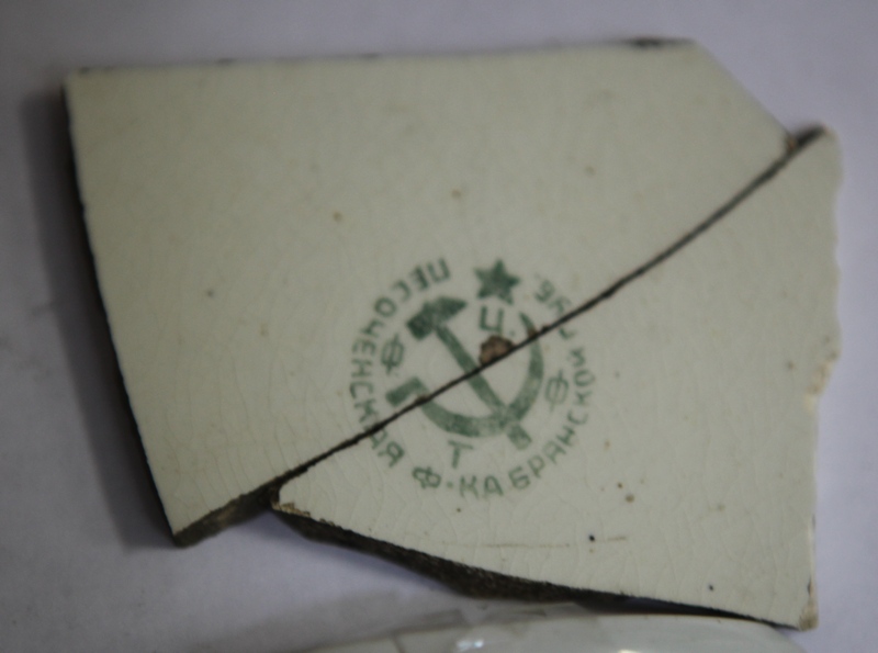 Вот недавно нашел остатки(( История у них интересная-найдены в поле,которое было заросшее много лет, недавно прошелся грейдер и в одном месте нашел остатки печки и много кирпича и посуды! Других находок кроме много битой посуды не нашлось! На трактористах виднееться как будто звезда справа или кажеться? Да и что такое ФЦФТ на куске плитки?