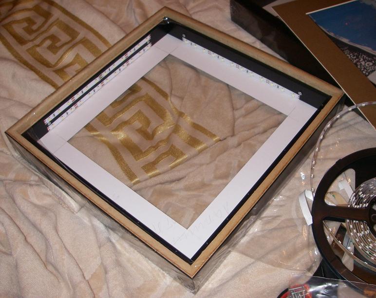 Материалы : 1.Рамочка из Икеи.- 450р. 2.Паспарту заказанное в багетной мастерской - 150р\пара. 3.Светодиодная лента - 210р\метр. 4.Саморезы - 9.40р на обе рамки. 5.Лен натуральный.- 150р\погонный м.(метр на обе рамы) 6.Фанера - 80р\лист. 1.Разбираем рамку и демонтируем лишнее , в.т.ч. реечки , которые держат стекло , скусываем шпильки с них. 2.Устанавливаем паспарту. 3.Устанавливаем и привинчиваем саморезами 2.5х15мм рейки , прижимая стекло и паспарту. Рейки устанавливают зазор между стеклом и подложкой. ...... Сделаю , будут фотки. 4.Выпиливаем из фанеры подложку. Сверлим отверстия под натяжку льна и находки. 5.Обтягиваем льняной тканью посредством прошивки по краю толстой нитью цвета подложки. 6.Крепим находки к подложке нитками . 7.Устанавливаем и фиксируем подложку. ..... Опционально: 8. Ставим свет. Приклеиваем светодиодные ленты и подводим к ним питание 12в. |