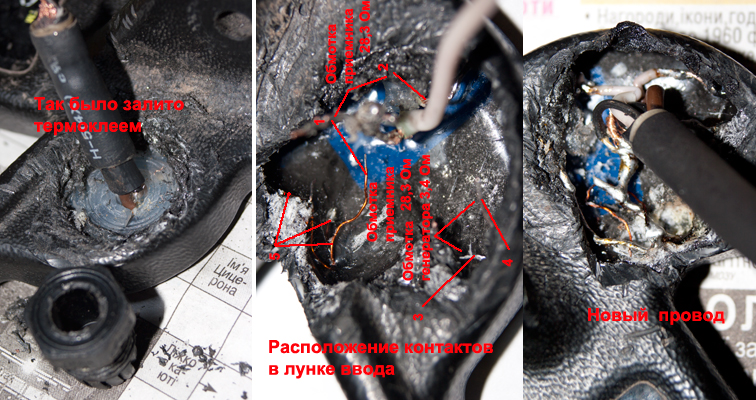 Катушка нел-торнадо для фишер 70-75. Симптом для беспокойства- прибор начал неадекватно себя вести. То вдруг переставал реагировать на металл, то потом опять начинал. Проверка катушки омметром показала, что при изменении наклона кабеля в месте ввода в катушку происходит потеря контакта внутри кабеля на контактах 3-4. Перекусив кабель сразу за вводом, выяснил что кабель таки целый, а обрыв где-то внутри за вводом. Распаян кабель у меня был так: три провода в экране, и один одножильный на массе, контакт разъема № 5. Этот одножильный тонкий черный проводок массы при попытке его зачистить просто вытянулся из ввода легко, был тоже оборван где-то внутри. При чем, вместе с ним на одной массе запаяны в разъеме экраны коричневого и черного экранированных проводов, центральные жилы которых выходят на контакты разъема 3-4. Именно в них где-то обыв был. Кстати, внутренняя изоляция центральной жилы экранированных кабелей сыплется от малейшего изгиба, что позволяет сделать вывод про некачественные провода кабеля. И сыплется изоляция у меня не первого, судя по постам на виолити. Белый экранированный провод жилой и экраном сидел на контактах разъема 1-2. Вроде бы, экран этого белого провода не соединен с экранами двух других проводов, которые выходят на обмотку контактами 3-4. Вскрывал сверху, аккуратно срезав по окружности внешний пластик вокруг кабельного ввода, он выпирает над плооскостью катушки. При вскрытии места ввода оказалось, что кабельный ввод и место соединения кабеля с проводами катушки залиты термоклеем в лунке из эпоксидки. В эту лунку кабельного ввода из эпоксидки выходят 3 центральные жилы, для белого, кориченевого и черного проводов. Они идентифицированы. И 3 лакированных провода, предположительно для экранов этих проводов, все в обрыве. Теперь для восставновления необходимо выяснить, к какому центральному проводу какой экран подпаивать из трех торчащих. Или же их можно соединить все вместе (может так и было, сейчас понять нельзя) ? Прошу помочь советом, как определить между собою экраны катушек, если это вообще нужно, или таки их можно соединять и не париться? |
