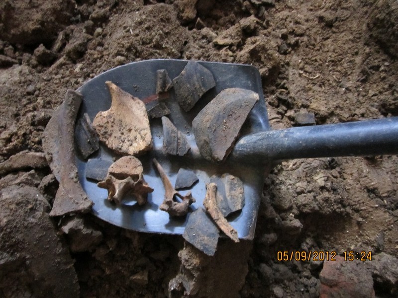 Но вот один вопрос не дает мне покоя. Как-то копая траншею под фундамент,для пристройки к дому,я наткнулся на глубине 80-90см на кости животных,вперемешку с черепками от горшков,крынок,кувшинов.Взяв тогда еще Аську я прозвонил траншею.Металла ноль.Ну и как-то успокоился. А тут на днях решил подпол углубить для хранения картошки/деревенские знают/. Так там такая же картина.Повсюду черепки и кости.Я призадумался.ЧТО ЭТО? Банальная помойка или какой-то ритуал?Обьяснения пока не нашел.А КАК НА ВАШ ВЗГЛЯД? Да и вот почему создал тему-то,интересно было бы послушать Ваши рассказы про сюрпризы, когда либо, обнаруженные под фундаментами или в подполах.Форумчане-делитесь,рассказывайте. Вложенные эскизы изображений -------------------- Оставь надежду всяк сюда входящий.