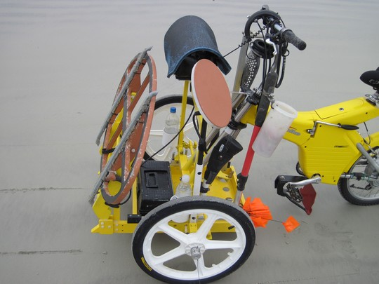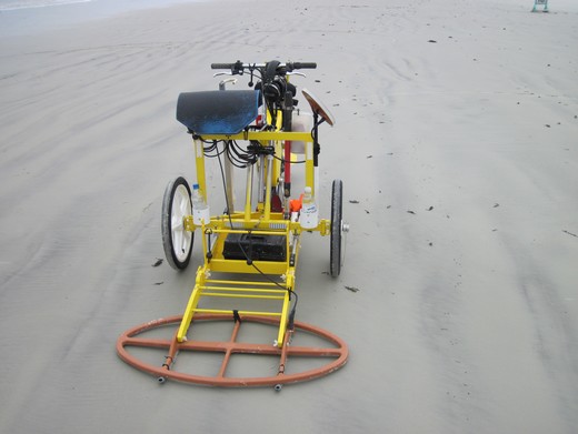 Значит за один проезд - 1 метр полоса, за время отлива можно прочесать приличный кусок. И махать катушкой не надо,и ориентироваться по оставленному следу будет удобно. А там откуда картинки нет названия сего чуда? Интересная штука.