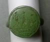 Я бы дал другую трактовку. Перстень охранника-выводящего. Один с саблей, другой с копьем держат третьего, а снизу как решетка-изгородь, чтоб не сбег