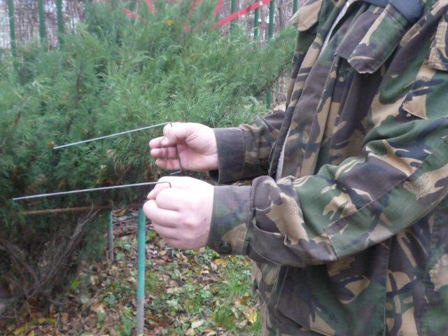 Для более правильного скольжения рамок рекомендую утяжелить концы усов рамок несколькими витками изоляционной ленты. Это так же придаст рамке чуствительность. Рамками, иготовленными из более толстой проволоки 3 мм , легче производить поиск на природе ,так как они более устойчивы к погодным условиям. Например ветру. Также можно использовать двух ручные рамки. А вот при работе с планами и картами лучше всего использовать одну рамку из более тонкой проволоки. 2 мм. Г - образную или каркасную.