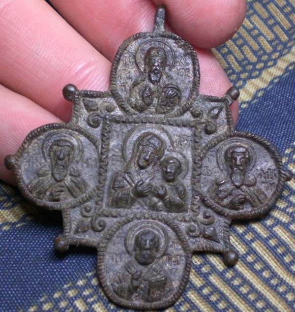 1) Что это за иконка - (подлинная или переливок?). На мой взгляд похоже, что подлинная... 2) Если подлинник, то какой период ( век) представляет. Или современный ??? В чём я сомневаюсь (см. ниже). 3) Если не подлинник, а переливок, могла ли быть изготовлена в то время. 4) Примерная цена этой вещи? А то я выставил на АУК без обсуждения, думал, что вещь рядовая и у некоторых людей появились сомнения Пред. история этой иконки: Она мною была куплена ещё три года назад у одного знакомого копаря, вместе с другими предметами старины (иконки, крестики, энколпионы, чешуйки, пулы ну и проч). Копом он занимался лет 20ть. Ему я доверяю. Продал мне , так как был в сильном запое, а в скоре умер, царство ему небесное, хороший мужик был. Поэтому происхождение иконки я установить не могу. Иконка уже на АУКЕ , я не хочу оказаться БЕЛОЙ ВОРОНОЙ и прошу объективного обсуждения. Окончание торгов 4го декабря. Заранее буду всем блогадарен. С уважением Зубчанин. |