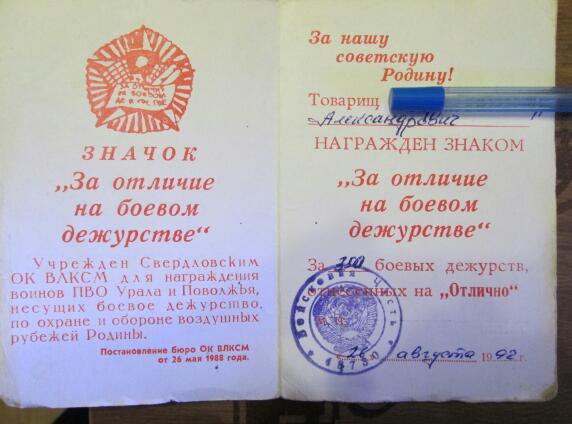 Почему документ на знак "За отличие на боевом дежурстве", а представленный