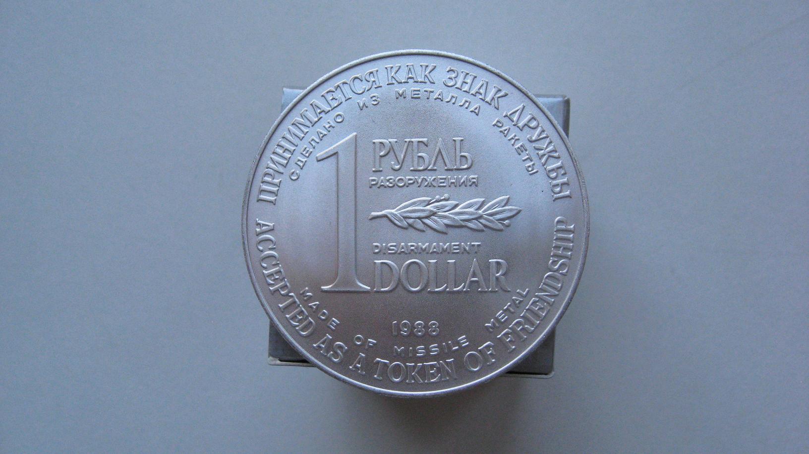 QUOTE(Бант @ Feb 24 2013, 14:57) Год чеканки: 1988 Тип гурта: гладкий Диаметр: 40.0 мм Толщина: 3.2 мм В 1988 году в соответствии с советско-американским договором ликвидируется часть ракет средней дальности Р-12 (СС-4 по натовской классификации). Идея пустить металл ракет на монеты родилась в советском комитете защиты мира (СКЗМ). Правда, рубль и доллар - необычные: символические, поскольку речь идет о "монете разоружения", изготовленной на Московском монетном дворе из сплава алюминия с титаном - металла, из которого делали обшивку ракеты СС-4. Что из себя представляет монета? Металлический кружок диаметром 40 мм. На одной стороне монеты значится "рубль разоружения", "доллар дисармамент", небольшая оливковая веточка. По окружности на русском и английском языках выбито: "Принимается как знак дружбы. Сделано из металла ракеты". На другой стороне - колокол, символ СКЗМ и надпись также на двух языках: "Советский комитет защиты мира". Это уникальный сувенир, символ конверсии. Средства, вырученные от реализации "монеты разоружения", в различных странах мира использовались для решения экологических проблем, на нужды детей, пострадавших от катастрофы в Чернобыле. Некоторую долю от продажи монет получили Хиросима и Нагасаки. Первые монеты были преподнесены Рональду Рейгану и Михаилу Горбачеву как авторам договора, президенту Дж. Бушу, мэрам городов Хиросима и Нагасаки, пострадавшим от атомной бомбардировки, бывшим президентам США Д. Форду и Дж. Картеру, премьер-министру Великобритании М. Тетчер и другим. Монеты бывают разные: одними расплачиваются, другими любуются, а некоторыми гордятся. Эта "монета разоружения" - гордость коллекционеров и всех, кто желает мира. Лот может быть отправлен по почте. Доставку оплачивает покупатель Металл, из которого изготовлена монета, не представляет опасности для здоровья. Спасибо, это я в тырнете видел, интересует подлинность, вызывает данный ли экземпляр мнение фуфел, а если нет то его стоимость без сертификата. -------------------- Если я выиграл в Вашем аукционе сообщите пожалуйста в ЛС!