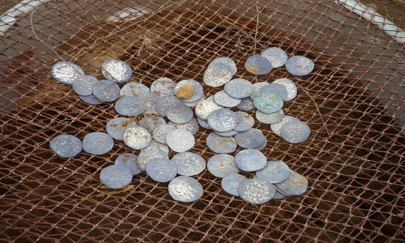 Не хочу ни кого расстраивать,так как у многих лежит снег и стоят морозы,у нас +9.Сегодня с утра моросил дождик,мы собрались ехать на коп около 8 часов,и передумали,но через полчаса дождик кончился,и было принято решение поехать покопать,я взял с собой фотик, я его никогда не беру с собой, приехали на место,благо у нас в основном Бэровские бугры,почва все впитывает и грязи практически нет,места все копаные перекопаные,я ходил часа два, копал несколько раз,монет нет,и из находок ничего интересного,смотрю отец переехал на другое место, тоже у него пусто,я хожу кружу,а так не хочется уезжать без находок,сигнал, копаю дирхем,обрадовался ну вот, хоть не с пустыми руками,рядом еще один сигнал,опять дирхем,думаю кошель,сигналы пошли тут и там,одни дирхемы,пришло чувство радости и восторга,от ощущения находки клада, пошел за отцом,за подмогой,стали вдвоем рыть дирхемы,была распашка,но на небольшом участке, потом в процессе нашли место клада,но фото видно где лежала основная часть дирхемов,около 60 штук,думал будет горшок,но монеты лежали в куче без всего,на глубине около 40-50 см., в общей сложности нашли 93 дирхема.Вот так мы открыли копательский год.
