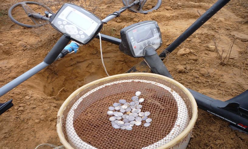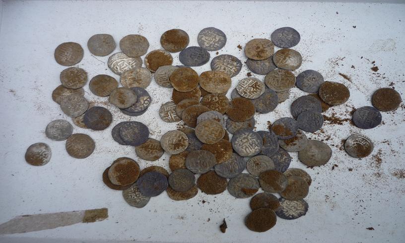 Мой приятель, в ваших краях, как то на поверхности собрал около 60 дирхемов. Всё, сигналов больше нет. Вернулся, через 5 лет, еле еле нашёл это место. Хорошо, что закопал там металломусор. Зашурфился, яма получилась 2, 5х3 м, глубина 2,7м. Итог, еще 602 сильвера. Кучка была глубоко, и растащена по всей площади раскопа многими поколениями сурков. Удачи!!! -------------------- Почта забанина, пишите: idud собака mail точка ru