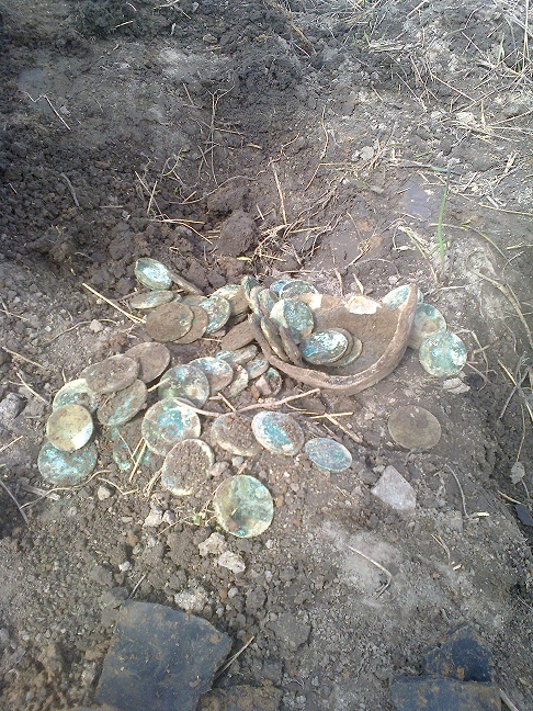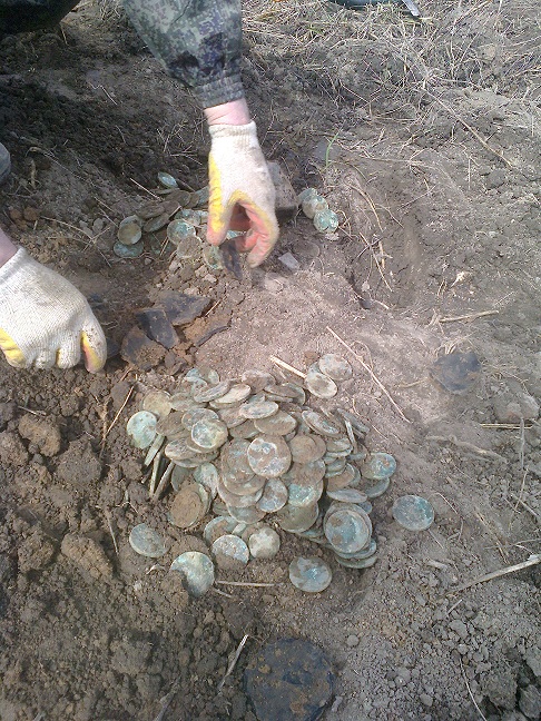 Ну вот наконец то и нам есть что выложить на общее обозрение. Сегодня второй выезд в этом году с напарникими поехали на старое битое место где в том году по осени подняли горшочек с Екатерининскими пятаками, травы после снега осталось дохрена и решили мы побродить вокрук того места где был поднят горшок я с деусом напарник с прошей и еще один напарник с теркой 74 опробовал новую катуху рыжую огромную. Я и напарник с прошей прошли по месту и нихрена а терка с новой катухой зацепила по нашим следам два пятака катиных я начал накручивать деуса обидно было как вдруг услышал радосный крик напарника с теркой и побежал к нему. Подбежав и заглянув в ямку увидел россыпь монет дальше фото