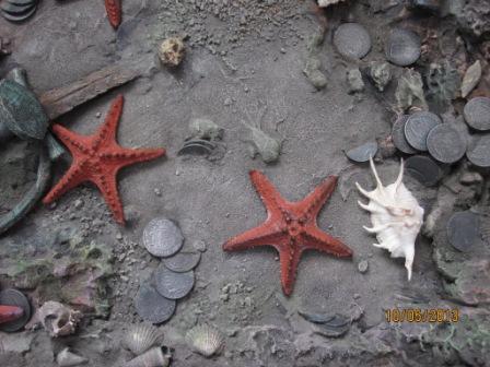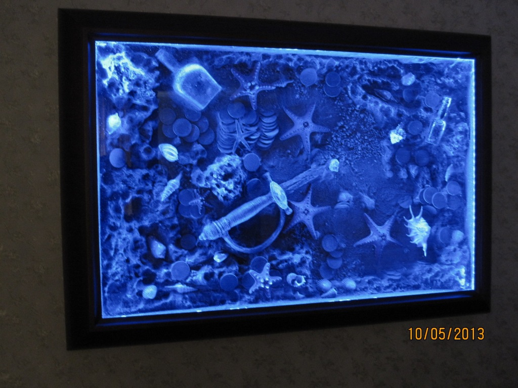 Задумка сводится к тому, чтоб симитировать фрагмент рифа с останками старинного судна, перевозившего ценный груз, остатки которого огалились после шторма. Эта первая работа, где я попробовал вмонтировать подсветку синего цвета, на мой взгляд, она придаёт реалестичность в целом (фото будут ниже) Вложенные эскизы изображений |