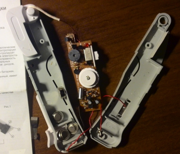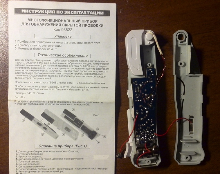 Недавно набрёл в строительном магазине на МНОГОФУНКЦИОНАЛЬНЫЙ ПРИБОР ДЛЯ ОБНАРУЖЕНИЯ СКРЫТОЙ ПРОВОДКИ. При ближайшем рассмотрении и просьбе к продавцу включит сеё чудо китайской инженерии (батарейки таблетки вставлял сам так как попытки продавца их туда поместить успехам не увенчались, но при помощи чей-то там матери и ключа от авто они были впёрты на своё место именно впЁрТы). Прибор реально начал срабатывать на металл после отстройки но только тогда когда метал подсовываешь под самый НОС (писк зуммера и загорается красный светодиод). Цена вопроса как оказалась 150 рублей. Поэтому бал куплен сразу без раздумий (возник чёс в руках разобрать его По приезду домой сеё чудо было сразу раскурочено и найдено несколько проблем. Далее на фото всё указано. Прошу прощения за качество некоторых фото - делал на телефон ледникового периода Вложенные эскизы изображений -------------------- Брянский волк.
