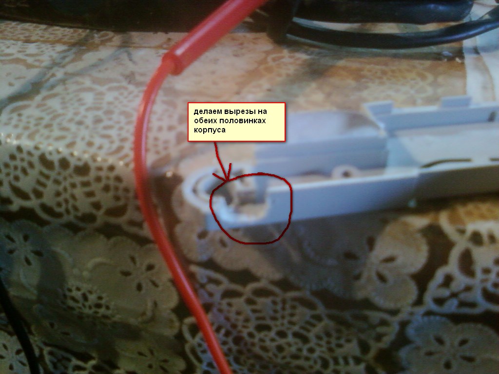 Саму часть детектора отводим в сторону и на обоих корпусах делаем вырезы для того чтобы датчик закрепить на одной линии с прибором ( с завода он раскладывается до "Г" образного состояния.