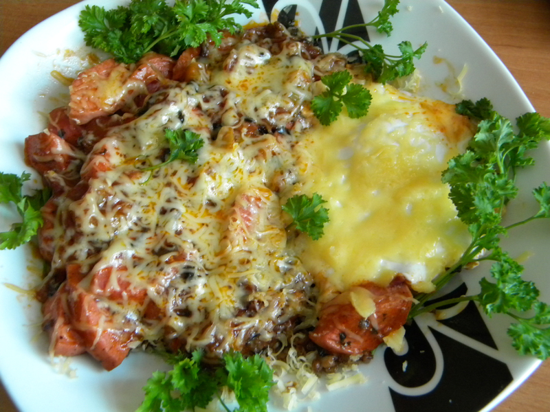 QUOTE Лопата:Сегодня замутил такое.Надо в духовке готовить,на сковорде -пригорает низ и не запекается яйцо сверху,да-же при закрытой крышке 17.gif З.Ы копчёности в таком варианте то-же не помешают biggrin.gif Да, я во втором рецете уточнила, что можно при жарке под низ сальцо или бекон подлаживать под гренки, или же если никак, воспользоваться микроволновкой на секунд максимум 30. А в качестве начинки, возможно и котлету или отбивную положить на низ, одну сторону обжарить перевернуть, "одеть тарелку" из хлеба, разбиваем яйцо и бифштекс с яйцом готов )) На свой вкус и цвет как говорится Я готовила по рецепту bormogloth(а), только немного приукрасила, под низ самый жареную гречку, после к луку добавила болгарский перец и базилика и поверх сыра натерла получилось где то так )) Сообщение отредактировано Grecha: Feb 8 2010, 14:01 |