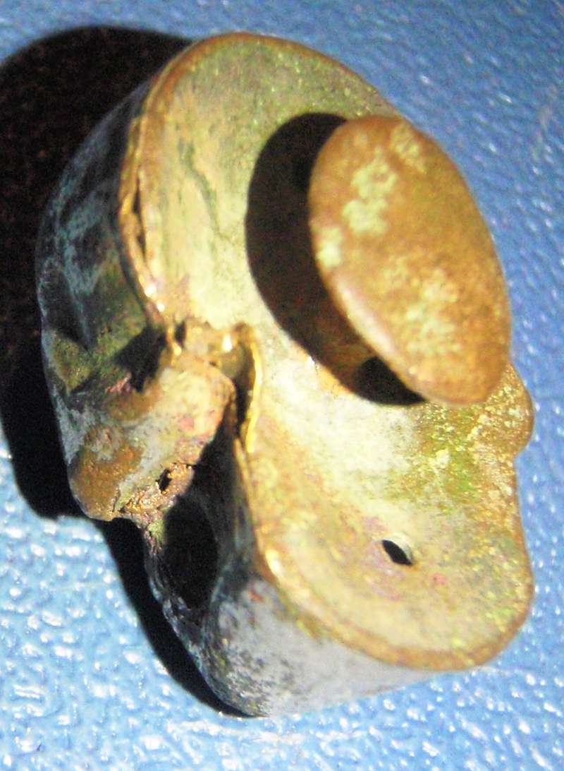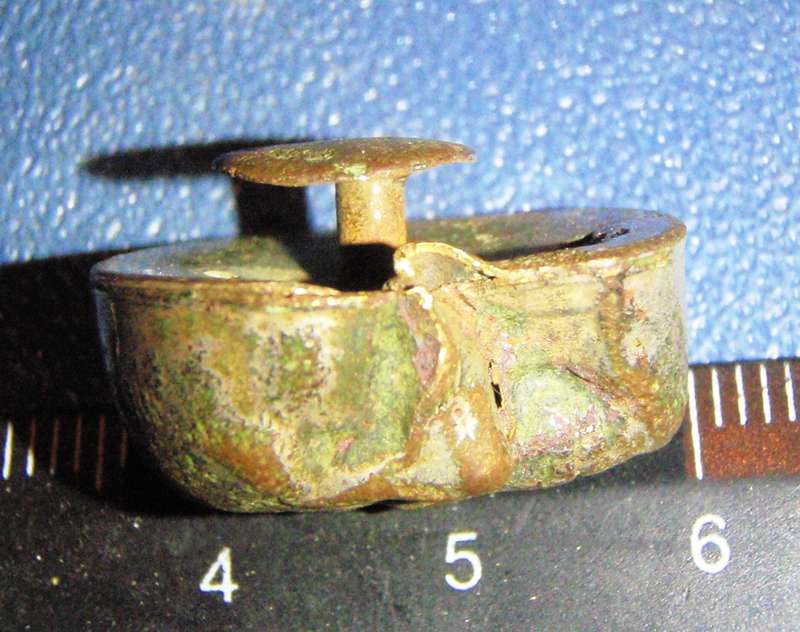 Приветствую! Данный черепок есть и у меня, могу сказать одно на 100%, это запонка, т.к. у меня сохранился получше и осталось крепление. Кто носил, толком до сих пор не понятно, больше всего версий, что данные черепки таскали прибалты (там их больше всего находили).