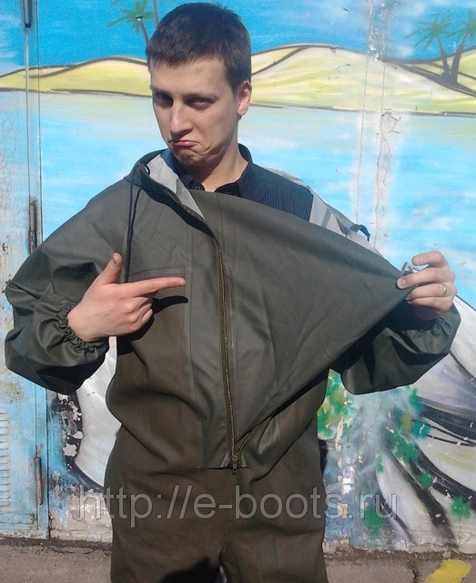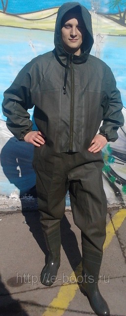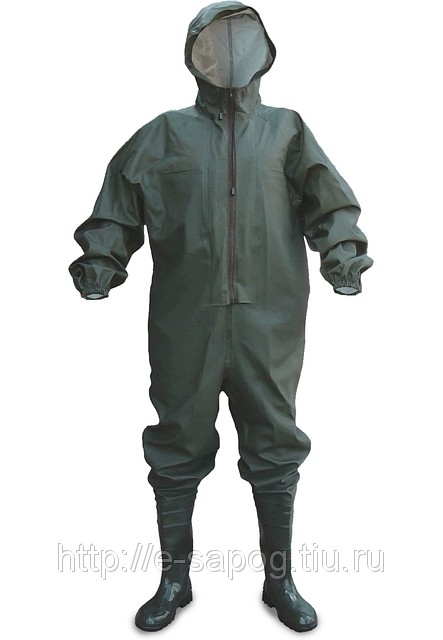 Держал в руках такой комбез. Вроде белоруссы делают. Молния не герметична, но под ней тоже ПВХ, так что заходить можно по шею. Размер обуви +2.