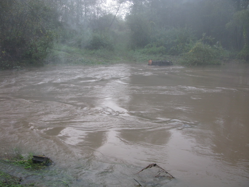Вот такие в наших краях дожди в эту осень бузуют Все тот же мостик что на предыдущем фото но перебраться на другую сторону вчера нам не судьба была Другой дороги в те края просто нет
