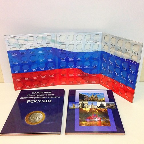 Альбом-планшет предназначен для хранения Памятных 10-рублевых БИМЕТАЛЛИЧЕСКИХ монет РОССИИ.