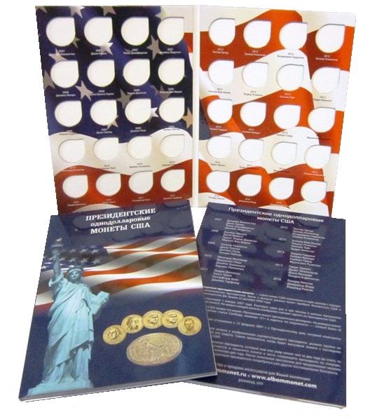 Альбом-планшет предназначен для хранения ПРЕЗИДЕНТСКИХ ОДНОДОЛЛАРОВЫХ МОНЕТ США.