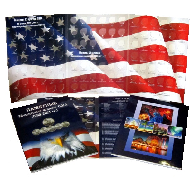 Планшет предназначен для хранения ПАМЯТНЫХ 25-центовых МОНЕТ США (1999–2021). ШТАТЫ, ТЕРРИТОРИИ и НАЦИОНАЛЬНЫЕ ПАРКИ США.