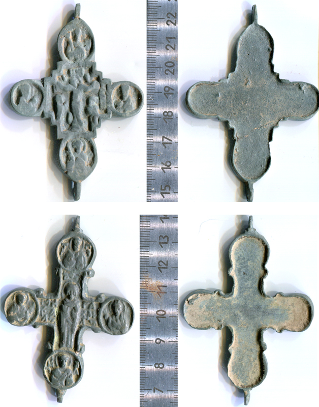 На основании чего Вы это предполагаете? Есть ли аналогичные, подтвержденные археологически, случаи совместного ношения створок разных энколпионов в одной связке. На костяке допустим. Разновременные кресты могли и попасть в землю в разное время. А то, что они отлиты одним мастером-фантазии. Все литые вещи в чем то похожи. Пути вещи не исповедимы. Вот находки двух энколпионов разного типа но одного периода бытования зафиксированы неоднократно.