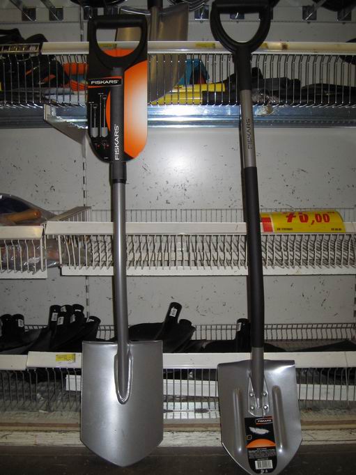У меня укороченный штыковой фискарс за 450 рублей (видимо, т.н. тосненская подделка =) ). К прочности лопаты никаких нареканий: если лень, то можно не прорезать дёрн со всех сторон, выдерживает и не гнётся.