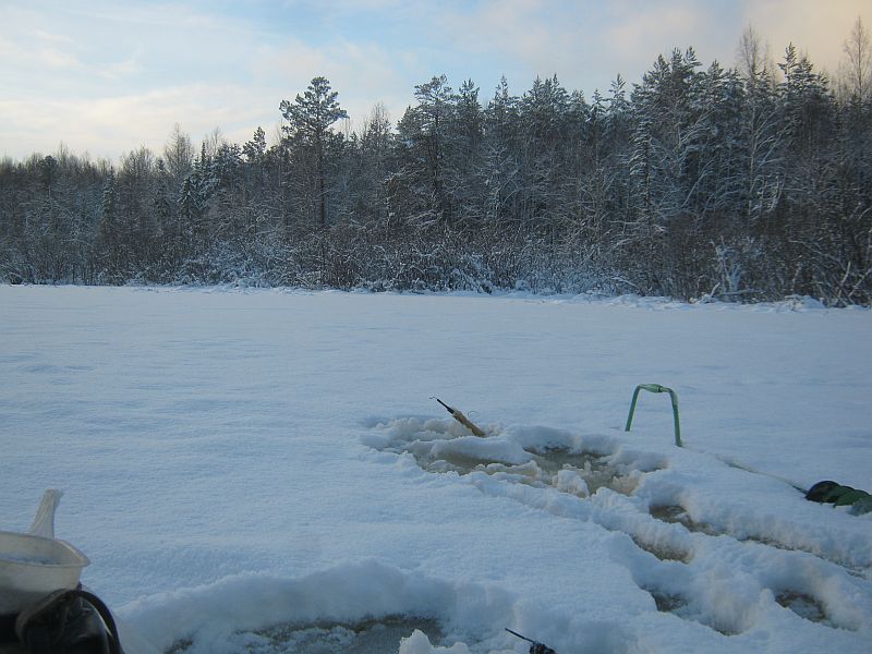 Сегодня обьехали три баклуши.Результат не очень.Ходить практически по водоемам нельзя.На двух водоемах лед см 2-3.На третий зашли в*рукав*.Глубина маленькая.Народу много.Друг от дружки все шарахаются.Что и была рыба .всю разогнали.Ну ладно .зато сезон открыт.Регион-Владимирская область.Будем ждать морозов.