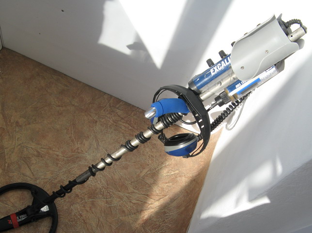 Когда прибор на уровне плеча(образно)то баланс намного лудше,но нужен ремешок,с ремешком освобождается рука когда достаешь хабар из скупа,при этом прибор в воду не падает,а стоит на дне вертикально(не тянется провод от наушников) а там кому как нравится. И неплохо бы на соединение поставить конусную гайку,чтоб нижняя штанга не болталась.Ты бы хоть покрасил опытный образец,а то какбудто этой трубой всю жизнь яблоню в саду подпирали