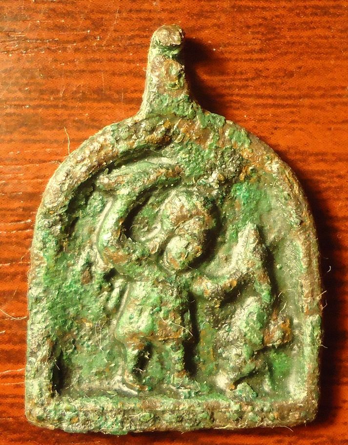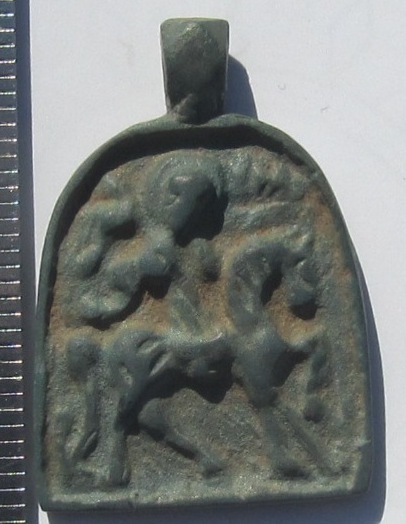 QUOTE(Александр Невский @ Dec 4 2013, 09:17) Иконка-привеска. Святой Георгий Медный сплав, литье. XIV – начало XV в. 25,3х17,2х1,5 мм; 2,8 г Происхождение. Место находки неизвестно. Описание. Иконка-привеска арочной формы. На лицевой стороне находится рельефное конное изображение святого Георгия вправо, держащего обеими руками стяг на длинном древке. За спиной святого развевается плащ. Конь показан идущим. Композиция заключена в рельефную рамку в виде валика. Оборотная сторона гладкая. Оглавие имеет вид ушка. На Георгия совсем не похож. Хотя наверное всё таки он http://mednolit.ru/photo/obrazy_svjatykh/c...020a/120-0-4092 Сообщение отредактировано Silverblend: Dec 4 2013, 10:50 |