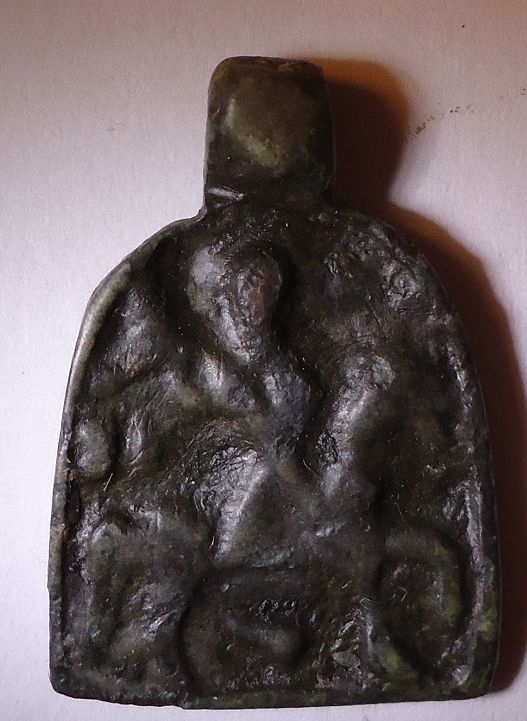 Медный сплав, литье. XIV – начало XV в. 25,3х17,2х1,5 мм; 2,8 г Происхождение. Место находки неизвестно. Описание. Иконка-привеска арочной формы. На лицевой стороне находится рельефное конное изображение святого Георгия вправо, держащего обеими руками стяг на длинном древке. За спиной святого развевается плащ. Конь показан идущим. Композиция заключена в рельефную рамку в виде валика. Оборотная сторона гладкая. Оглавие имеет вид ушка. -------------------- Суха теория: мой друг: А древо жизни вечно зеленеет
