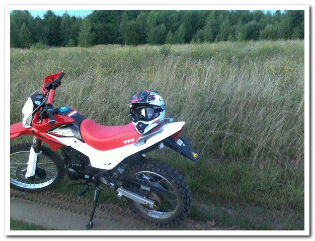 Покупался летом 2013 г. новым у официального дилера, есть ПТС и все документы. Проездил сезон. Обкатку проходил на масле MOTUL, пробег на данный момент составляет 750 км. Масло поменяно, всё протянуто, смазка цепи тоже MOTUL off road. Мотоцикл не топился, болот не видел, трасс для мотокросса и дорожных трасс тоже, только бескрайние русские поля Внедорожные качества превосходны, двигатель тяговитый, если умеете ездить на мотоцикле то проедите везде! Резина стоит кроссовая, не стертая, состояние на 5 с минусом. Продавать жалко, т.к. всегда хотел такой мот, НО мне нужен квадрик т.к. езжу с девушкой (боится она двухколесных). В июле покупал за 70, хочу 55, но торг никто не отменял. Если кого заинтересует пишите. Могу поменяться на квадрик с моей доплатой. Мот в Московской области. С уважением. Вложенные эскизы изображений -------------------- Все мы люди, да не все человеки... (с)