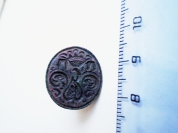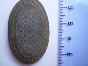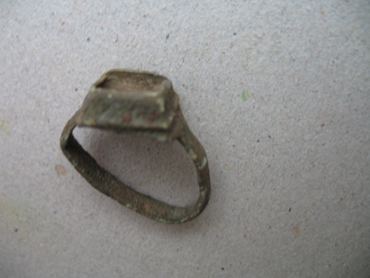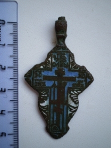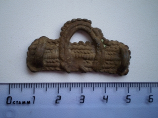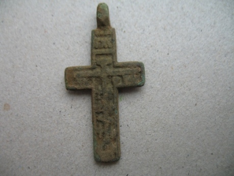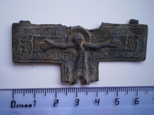 От ямки к ямке мы медленно спускаемся в низину, по берегу ручья, ближе к тому месту, где два дня подряд беспорядочно колесили по завалам и буреломам. Находки здесь не так часты, но и небезынтересны. Искать приходится, ныряя под огромные, вставшие дыбом корневища поваленных деревьев, перелезая на заднице по покрытым мхом стволам старого валежника. Ломая ветки и, чертыхаясь, миновали бурелом. Сразу за ним лес словно «успокоился», ближе к реке стал редким и чистым, ровным ковром землю устилает серо-зеленый ковер болотного мха, поросшего брусникой, редким черничником и молодыми елками. Лес тих и прозрачен. Мы молча стоим и вслушиваемся в звуки природы. Где-то в воздухе «блеет» бекас, на дальнем разливе реки надрывается в любовном признании селезень. Искать тут одно удовольствие. Когда до берега остается метров пятнадцать, из под молоденьких пушистых елок доносится долгожданный «высокий» сигнал. Вскоре на поверхность был извлечен от времени потемневший перстень с синей эмалью и отпечатавшимся в ней двуглавым орлом. В череде нескольких «прибрежных» монет почти у самой воды откапываю тонкую пластинку три сантиметра длиной. Пластина блестит и переливается чистейшими золотыми оттенками, благородными отливами сверкает на солнце. У меня аж дух перехватило, неужели золото? Она не похожа ни на что. Скорее можно подумать, что в огне пожарища что-то эдакое расплавилось, а потом застыло навсегда в своем неповторимом силуэте. Очертания пластины бесформенны, на ее поверхности словно складки проступили какие-то беспорядочные линии, напоминающие таинственные знаки из какого-нибудь ужастика. Невдалеке, под гнилым, полуразвалившимся пнем откапываю еще один крест, потом позеленевшее кольцо. Дальше – полная тишина.