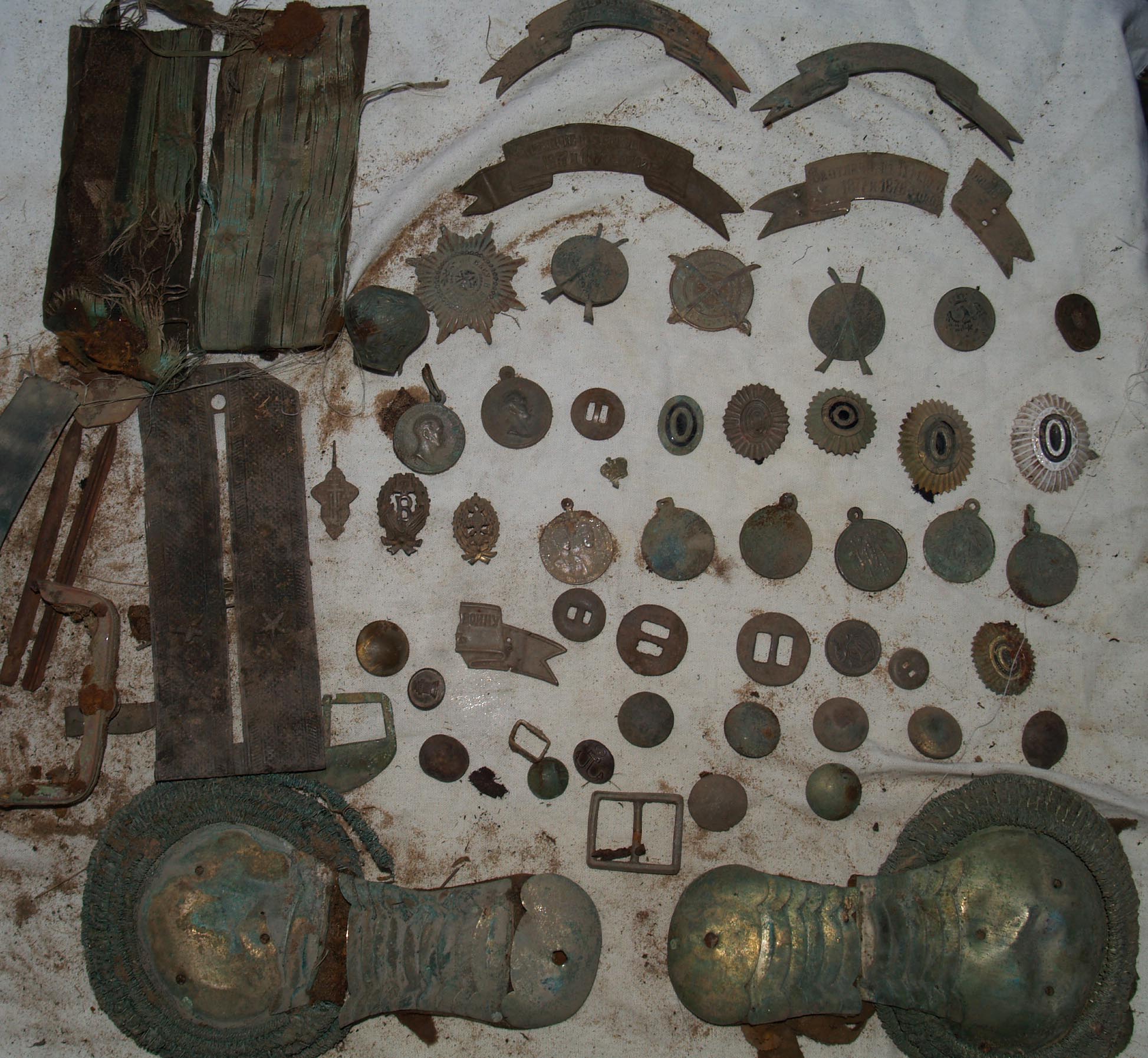 QUOTE(Волгарь @ Apr 26 2010, 22:58) В прошлом году мы купили прибор Минилаб т 34 два месяца собирали пробки да гильзы. Потом с сыном прошлись по заброшеному хутору.Первый выезд тоже пробки да гильзы.Следующий выезд дал результат.На одном месте примерно метров двадцать квадратных Мы подняли девять медалей ,крест за Кавказ ,два знака за отличную стрельбу ,ленту за Турецкую Войну.Много пуговиц.Я сыну говорю .Такого больше не будет.А в суботу решили прокатиться.И результат на лицо.Буквально метрах двадцати , тридцати .Т 34 себя опять проявила. Волгарь тоже при-соединяюсь к коллегам Поздравляю!по лентам посмотрите проходы на аукционе..сохран и т.д.Фото каждой вещи лучше ставить по отдельности,каждый сможет посоветовать по своей теме ИМХО.Заслуженный Вам плюс!п.с.мне эполеты понравились,а т-34 себя не только проявила но и окупила в разы |