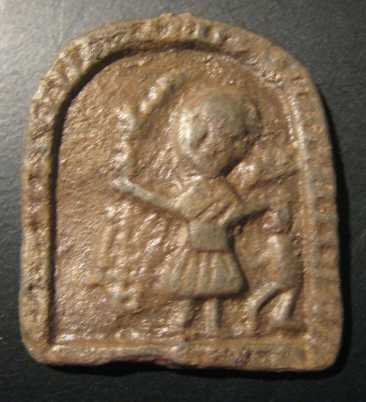 На стыке 3-х губерний:Тверской, Владимировской и Московской.У погоста рядом с разрушенной церковью была найдена данная иконка Никиты бесогона из сопутки были находки от чешуи Ивана Грозного до ранних Советов.Колечки и крестики того же периода. Размеры:высота 27мм без ушка (утерено) ширина 23мм.Обратная сторона голая (лысая). Удивляет меня и ставит в тупик изображение сюжета: Бес изображен "лицом" к Никите, а не спиной к нему?! "Дрын" в руке Никиты расположен не над головой, а сбоку?! Спецы и знатоки помогите с "опознанием". Интересует век (по мне енто 15-16вв. ИМХО) и конечно же редкость данной иконки. За какчество фото извиняюсь. С уважением. Сообщение отредактировано Georgich AM: Feb 20 2014, 21:52 Вложенные эскизы изображений -------------------- На истину не претендую,нахожусь в её поиске.
